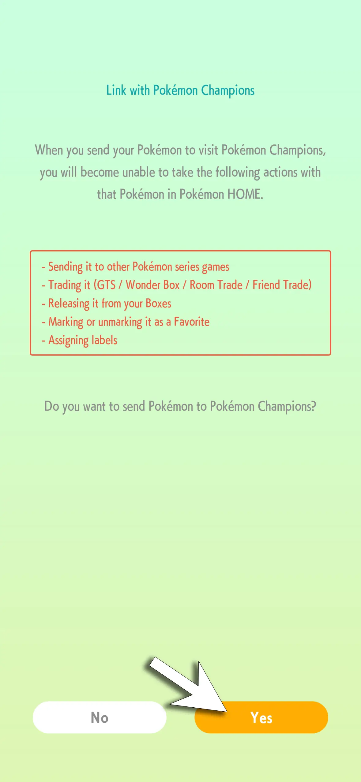 - Review the chosen Pokémon, then tap 'Yes'