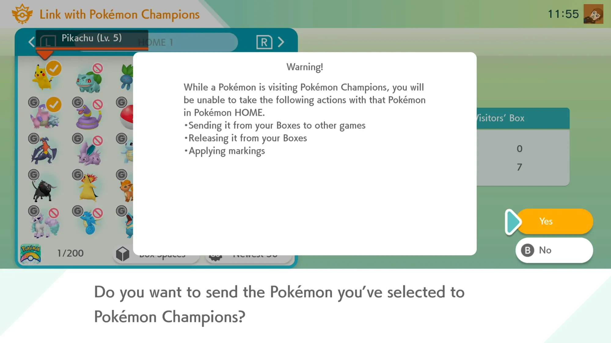 - In the 'Link with Pokémon Champions' area, select 'Send for a Visit'